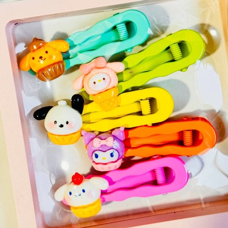 پک گیره مو کادویی انبری کیوت فانتزی کرومی ملودی سینامورول پوم پوم پوچاکو کیتی خاص با جعبه