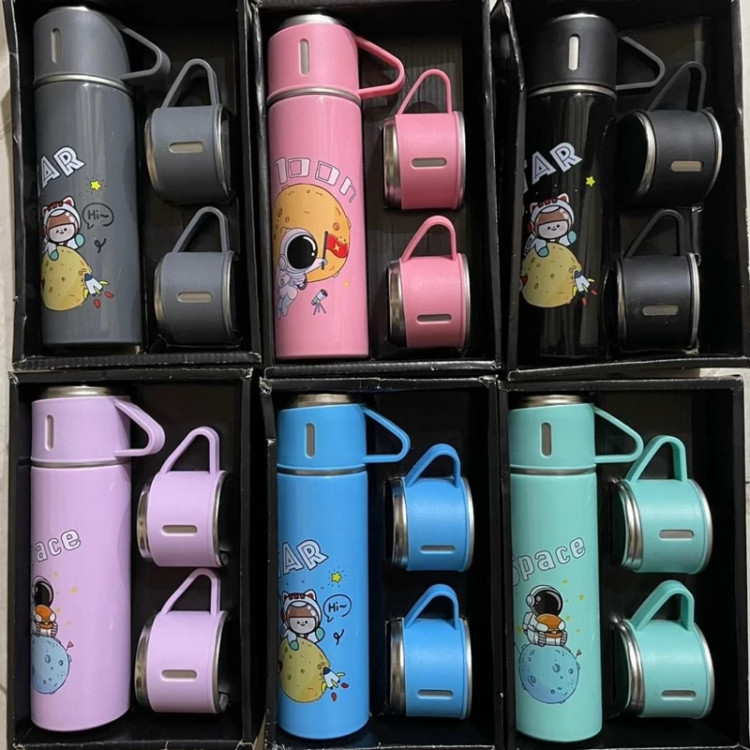 فلاسک رنگی با 3 لیوان