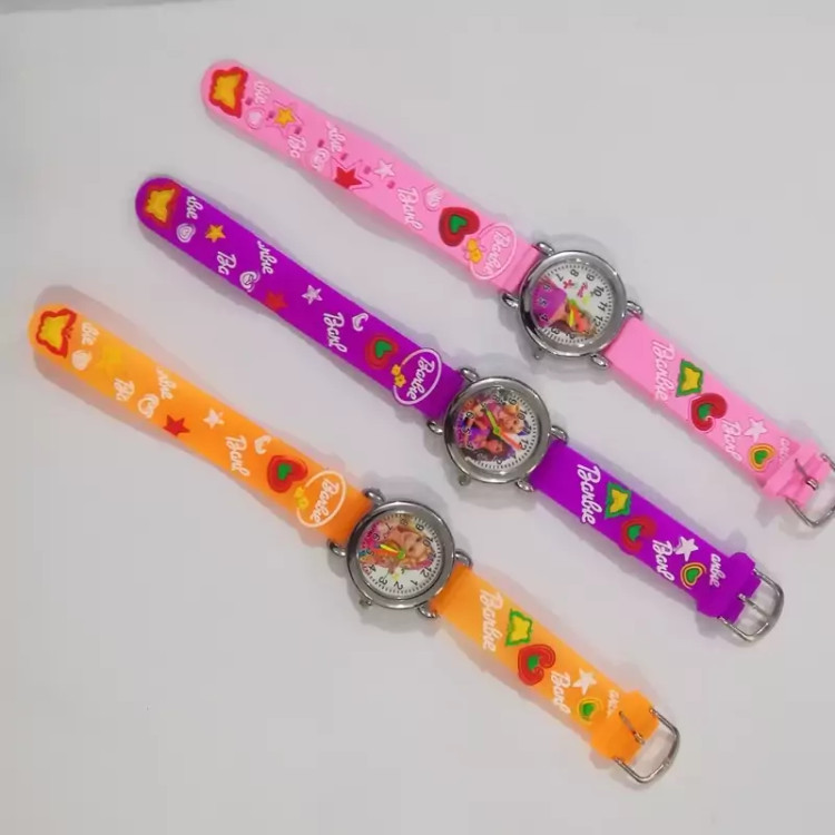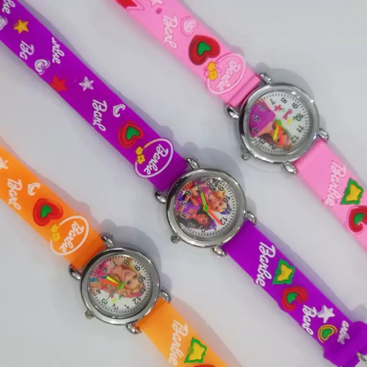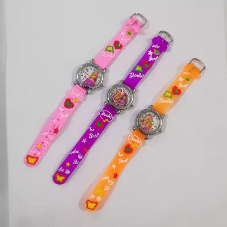 ساعت بچگانه وارداتی طرح باربی ساعت مچی دخترانه باربی ساعت بچگانه باربی ساعت عقربه ای باربی رنگ بنفش و صورتی و نارنجی