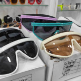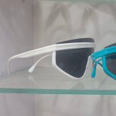 این عینک با فریم یکسره که به عینکهای نقابی معروف است فریم خاصی دارد و ابعاد عدسی بزرگی دارد و کل اطراف چشم را می گیرد.