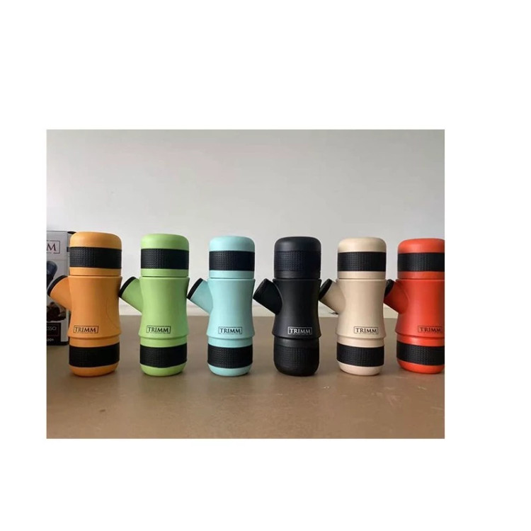 مینی پرسو تریم مدل Trimm HS-8201 اسپرسوساز مسافرتی رنگ سبز زرد آبی و کرم قهوه ای