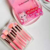 ست براش 7 تکه پیشی گربه طرح صورتی مسافرتی ست براش تراکم بالا بدون ریزش