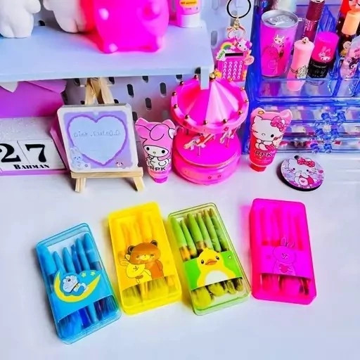 ست براش پاستیلی مینی کوچک مسافرتی جعبه دار رنگ نئونی جذاب میشا جوجه تدی خرگوشی خرسی