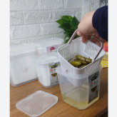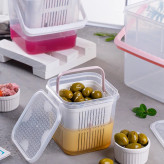 📍ظرف نگهدارنده ترشی و لبنیات مانیا یک وسیله کاربردی از پلاستیک بدون مواد مضر ساخته شده و به منظور جدا کردن آب از مواد غذایی، سبدی متحرک دارد که در هنگام استفاده از آن به واسطه یک گیره S شکل در سطحی بالاتر قرار میگیرد و به لبه مخزن اصلی متصل می شود تا امکان دسترسی آسان به مواد داخل ظرف را فراهم شود. طراحی خاص این محصول اجازه میدهد تا انواع مواد غذایی مورد نیاز به نگهداری درون آب یا سرکه، در داخل آن غوطهور شده و به هنگام استفاده با خارج کردن سبد آنها را آبکشی کند.