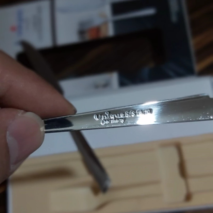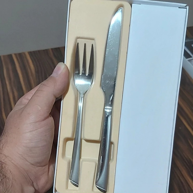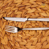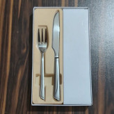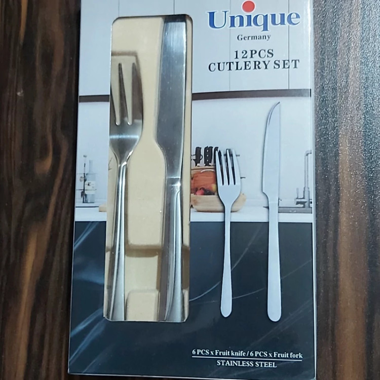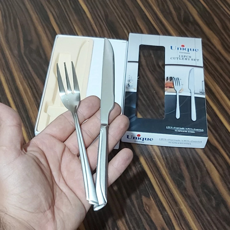 کارد و چنگال پذیرایی یونیک آلمان (6 چاقو کارد میوه خوری6 چنگال پذیرایی)طرح خط دار دسته یک تکه استیل. کارد چنگال جعبه ای
