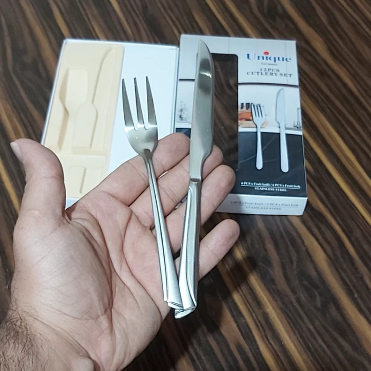6 کارد چاقو میوه خوری استیل (استیل ضد زنگ) همراه 6 چنگال میوه خوری طرح ماینز