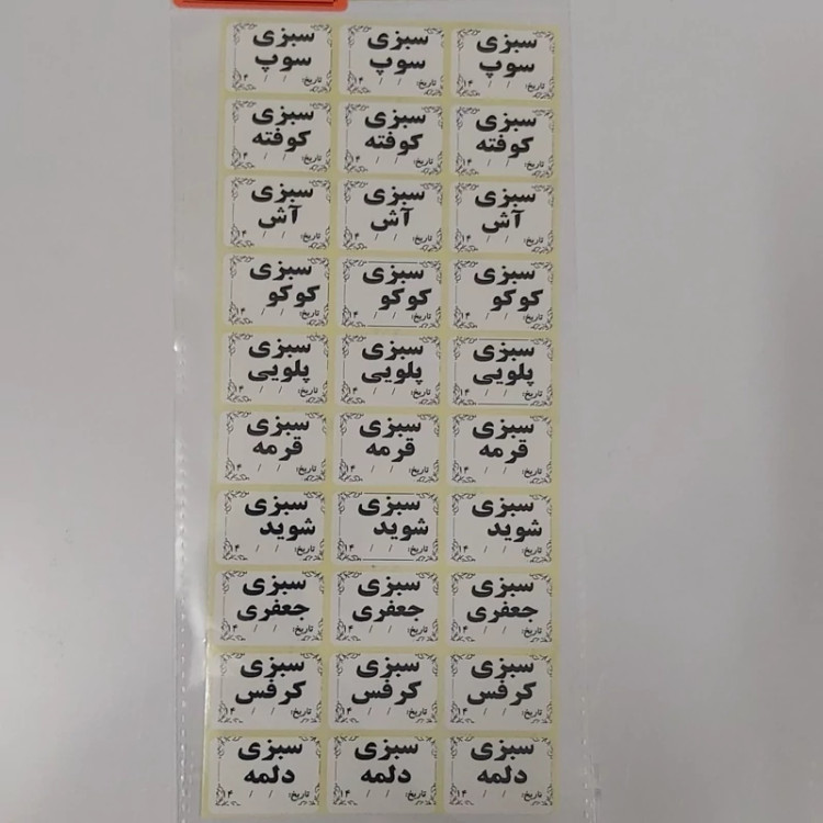 برچسب لیبل سبزیجات 30 تایی یک ورق (برچسب سبزی ، کرفس ،کوکو،سبزی سوپ و...)