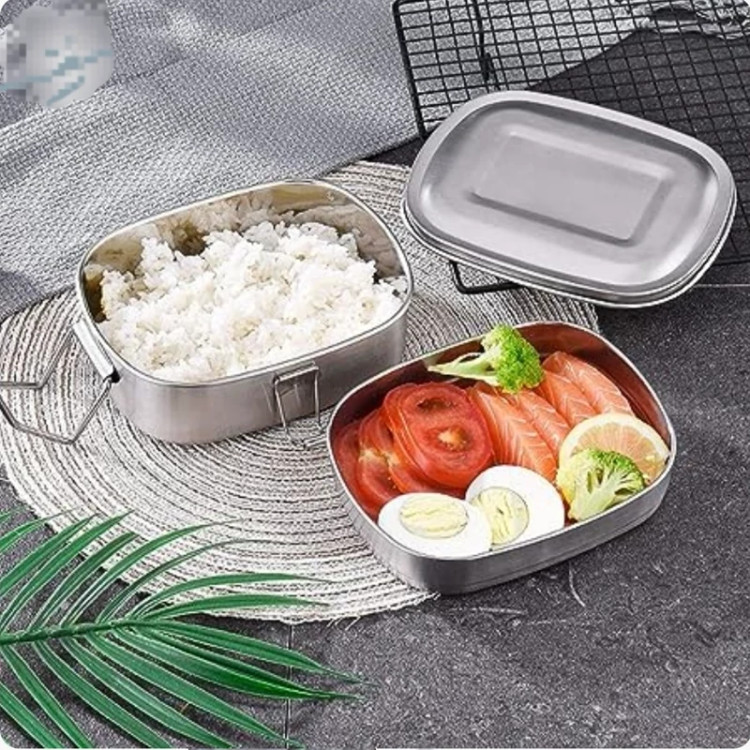 ظرف غذا ناهاربری 2 طبقه استیل قفل دار (استیل نگیر وارداتی)سایز متوسط