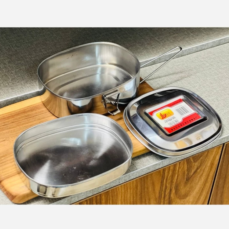 ظرف غذا استیل قفل دار 2 طبقه(طبقه کوچک مناسب خورشت، سالاد و ...) 3 تیکه