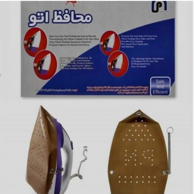 محافظ اتو یک لایه از جنس نسوز می باشد که توسط فنری از پشت به اتوی شما وصل می شود و مانع از سوختن، لکه گیری و از همه مهمتر مانع از برق افتادن لباس شما می شود.