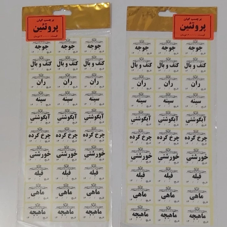 برچسب لیبل پروتیئن 30 تایی یک ورق (برچسب گوشت ، مرغ ،جوجه،ماهی و...)