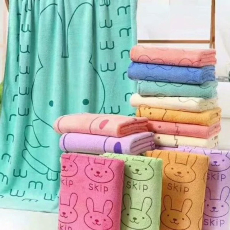 حوله استخری حوله مسافرتی ورزشی اندازه 70 در140 نانو طرح خرگوشی میکروفایبر
